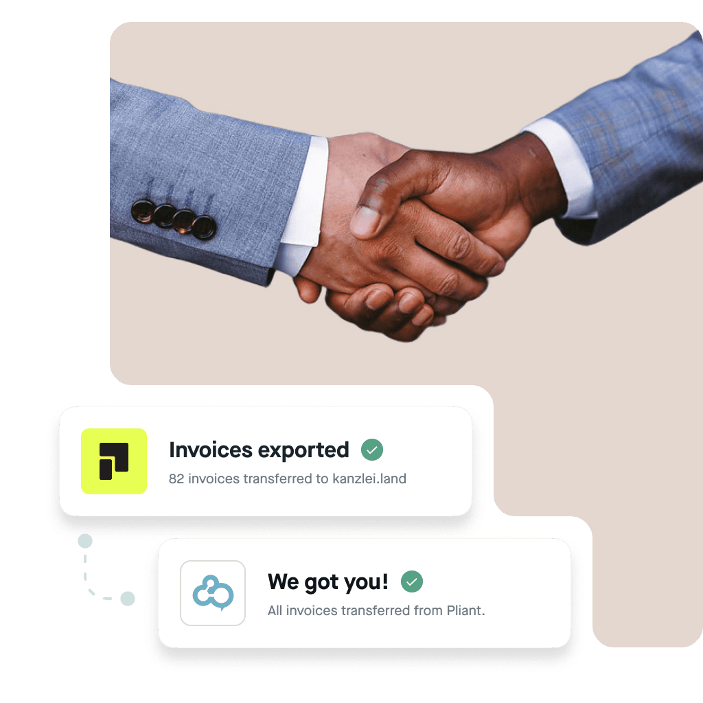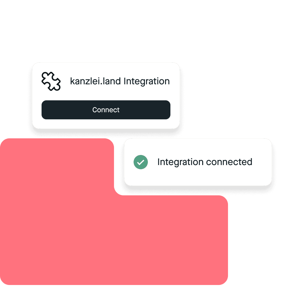Pliant Support will help you activate the integration with kanzlei.land. Write us an email or give us a call.
