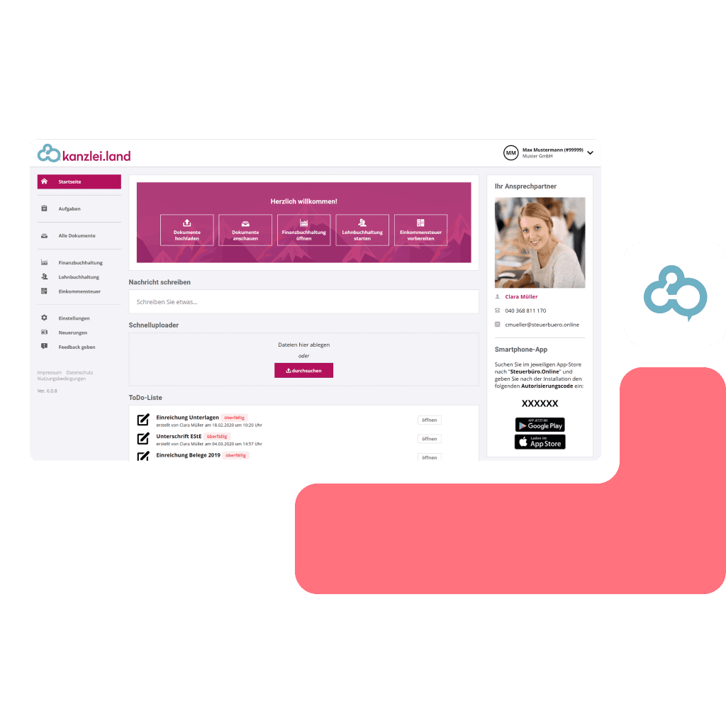 kanzlei.land simplifies the cooperation of tax accountants with their clients. For instance, the exchange documents, financial accounting, staff and receipts administration, in addition to exchanging messages and tasks.
